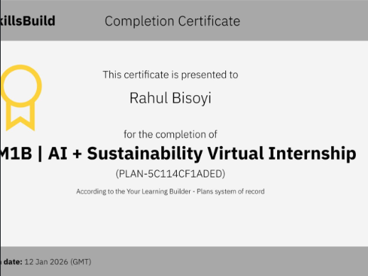 Successfully completed AI + SkillsBuild Virtual Internship focusing on Artificial Intelligence concepts, practical learning modules, and real-world AI applications.